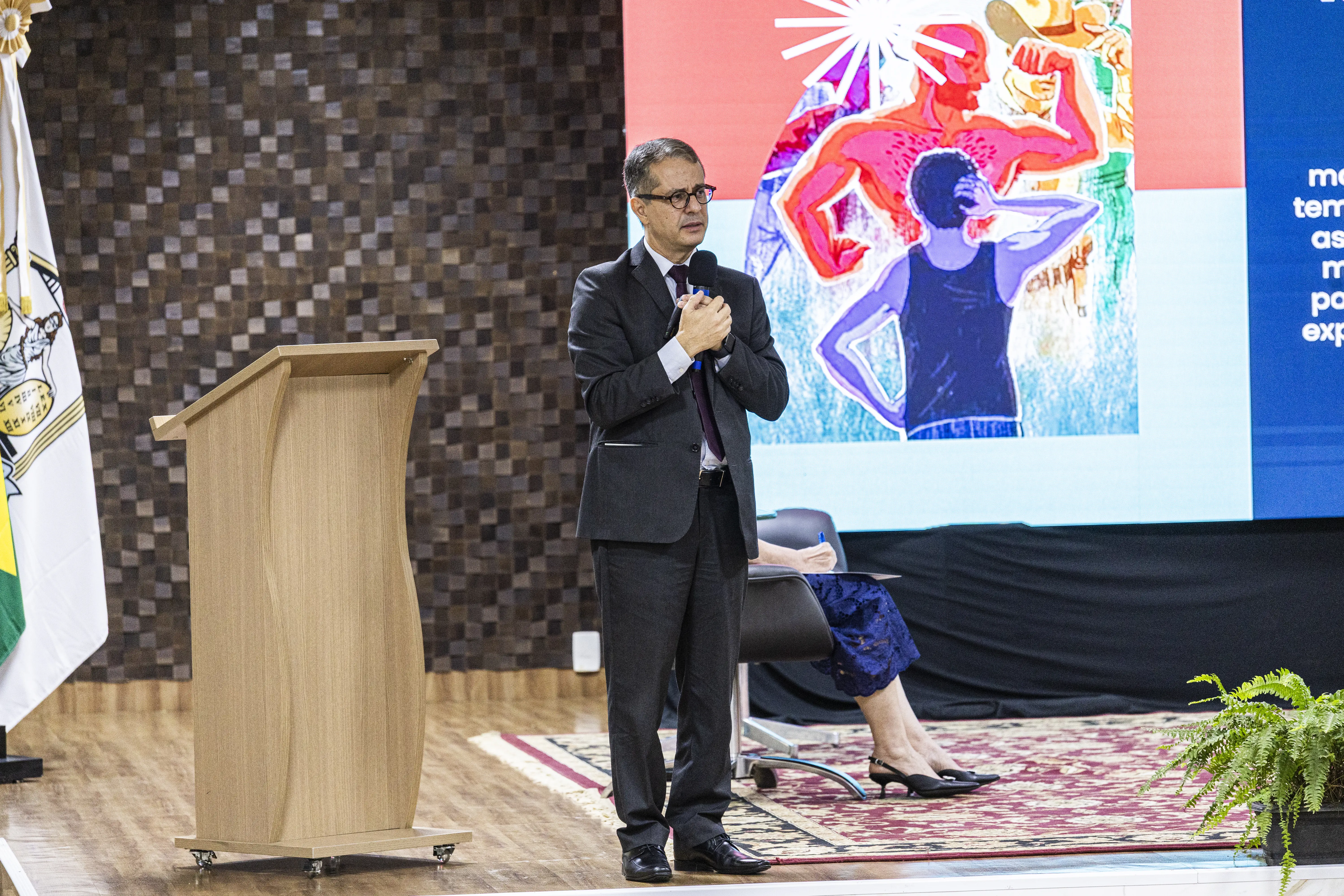 O juiz Marcelo Gonçalves de Paula, do Tribunal de Justiça de Minas Gerais, conduziu a palestra com um olhar direto para a raiz do problema: o comportamento de homens agressores e as estruturas sociais que moldam essa masculinidade. “Precisamos trazer a discussão do que está no interior desse homem, discutir essas estruturas de comportamento, o que marca essa masculinidade e o que, muitas vezes, pode levar à violência”, afirmou.