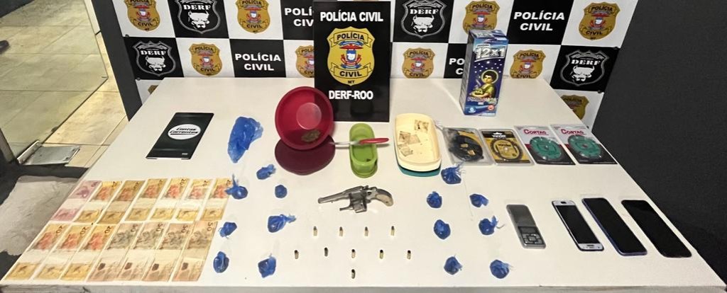 Policiais da Delegacia Especializada de Roubos e Furtos de Rondonópolis prendeu em flagrante na tarde de quarta-feira (01.11) um suspeito pelos crimes tráfico de drogas e porte ilegal de arma de fogo, na região do bairro Liberdade.