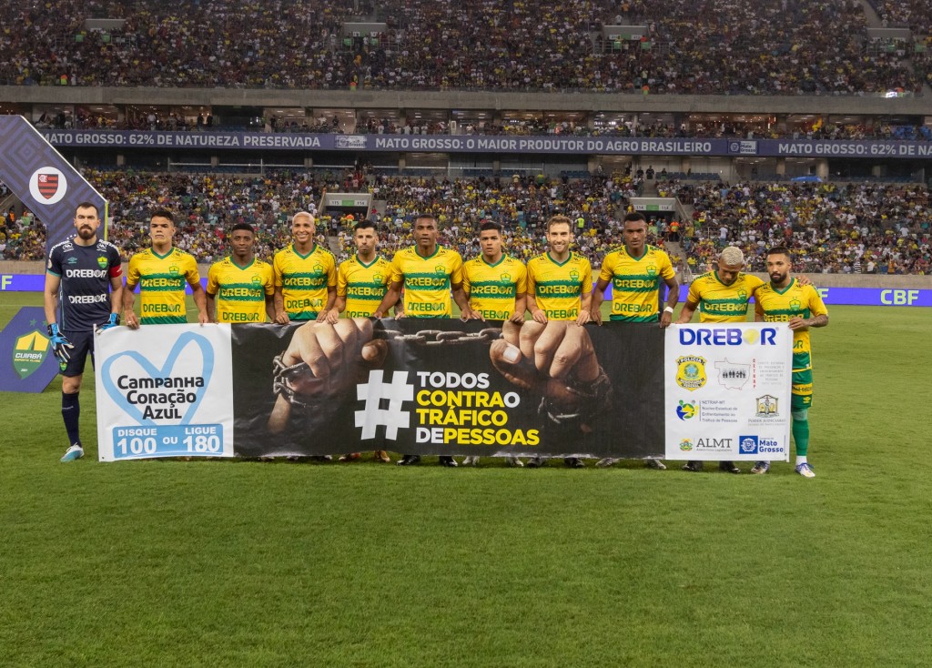 A iniciativa realizada na partida entre Cuiabá e Flamengo, pela 18ª rodada da série A do Campeonato Brasileiro 2023, trouxe pelas mãos dos jogadores do Cuiabá Esporte Clube uma faixa com os dizeres ‘#Todos Contra o Tráfico de Pessoas’ para um público de mais de 33 mil pessoas.
