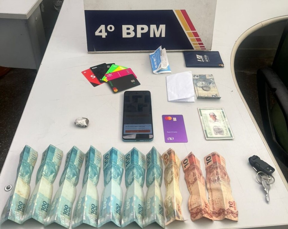 Ainda no banco, o homem afirmou que havia um terceiro suspeito em um veículo Logan, branco, aguardando-o enquanto fazia as operações na agência bancária. Com ele, os militares encontraram uma porção de substância análogas à maconha.