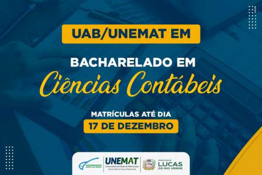 Começa hoje (15), o período de matrícula para os aprovados no processo seletivo do curso Bacharelado em Ciências Contábeis na modalidade à distância (EaD), ofertado pela Universidade do Estado do Mato Grosso (Unemat), em parceria com a Universidade Aberta do Brasil, polo Lucas do Rio Verde.