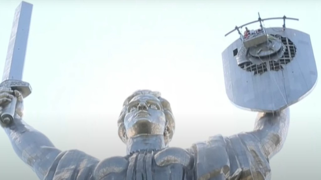 A mudança foi feita no último domingo (6), quando o governo ucraniano trocou o símbolo soviético por um tridente que fica no escudo do monumento conhecido como “Mãe Pátria”.
