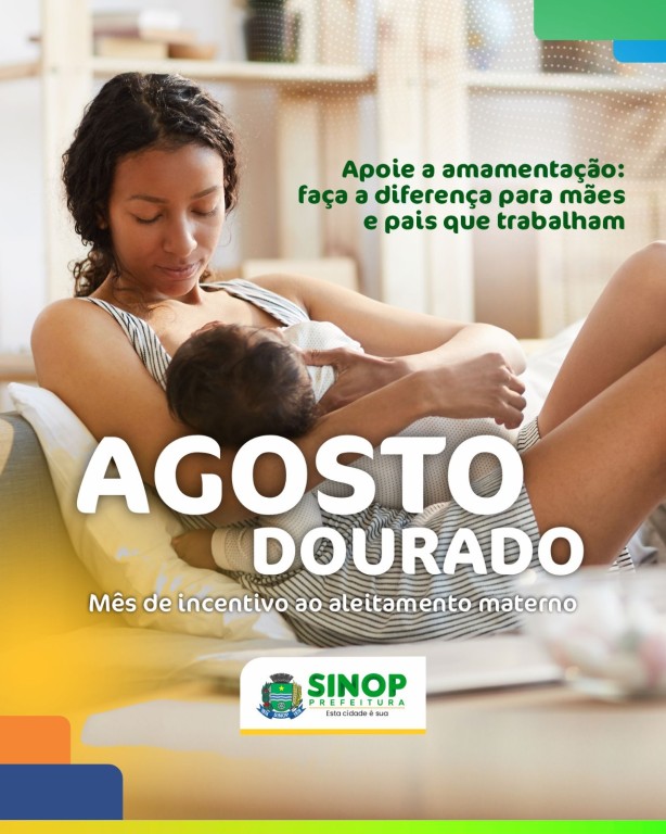 Um novo mês se inicia e com ele a cor dourada se destaca, para chamar a atenção da sociedade para a conscientização do aleitamento materno. O Agosto Dourado tem como slogan deste ano, ‘Apoie a Amamentação: faça a diferença para mães e pais que trabalham’. Durante 30 dias, as Unidades Básicas de Saúde de Sinop irão realizar uma programação especial.