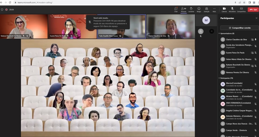 Esta foi uma reunião “pré-evento” para apresentar o conteúdo do curso “Servidores da Paz”, que vai ocorrer de forma presencial, entre 28 de agosto e 01 de setembro, em Chapada dos Guimarães e Cuiabá.