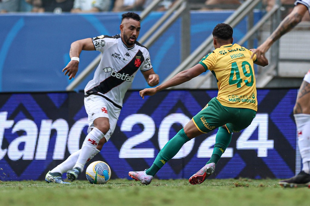 O jogo começou com o Cuiabá pressionando e quase abrindo o placar aos quatro minutos, quando Max acertou a trave e, no rebote, Derik também carimbou o poste. Aos 11 minutos, Denílson teve uma boa chance, mas o goleiro Léo Jardim fez uma defesa crucial. O Vasco respondeu de forma eficaz aos 16 minutos, quando Coutinho fez uma inversão para Puma Rodríguez, que encontrou Vegetti na área para abrir o placar.