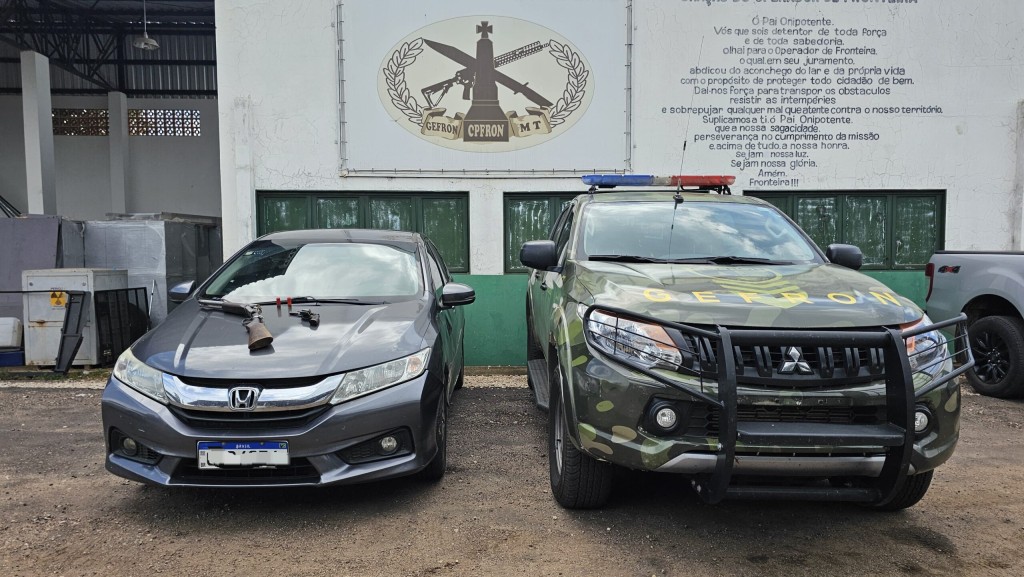 Equipes do Grupo Especial de Fronteira(Gefron-MT) recuperaram na manhã desta terça-feira (02.04), na BR-174, região da comunidade Caramujo, município de Cáceres, o veículo Honda City, de cor cinza, do motorista que trabalhava por aplicativo e foi vítima de latrocínio da cidade de Sorriso(420 km de Cuiabá).