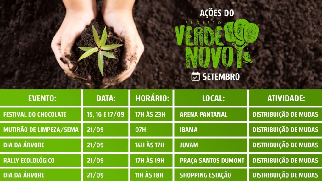 Verde Novo – Um projeto do Poder Judiciário de Mato Grosso, idealizado pelo Juizado Especial Volante Ambiental de Cuiabá (Juvam), desenvolvido em cooperação com a Prefeitura de Cuiabá, Instituto Ação Verde e parceiros.