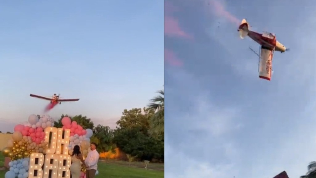 O piloto foi contratado para revelar o sexo de um bebê em um evento em uma fazenda. Imagens mostram o momento em que o avião passa sobre a festa soltando fumaça rosa. Em seguida, o piloto perde o controle da aeronave, que cai. Assista: