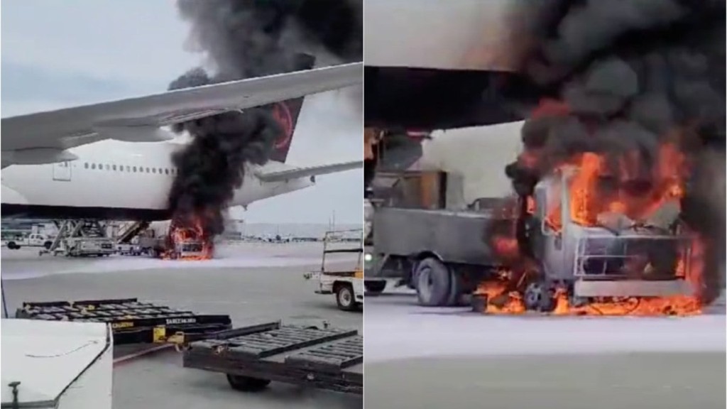 Um caminhão-pipa pegou fogo embaixo de um avião que estava parado em um aeroporto no Canadá nesse domingo (9). O incêndio teria começado no motor do veículo, de acordo com o site Aviation A2Z .