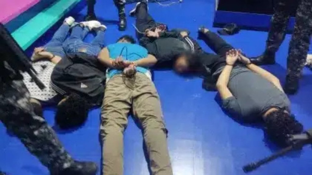 Criminosos rendidos no chão do estúdio de TV da rede TC nesta terça-feira (9)
