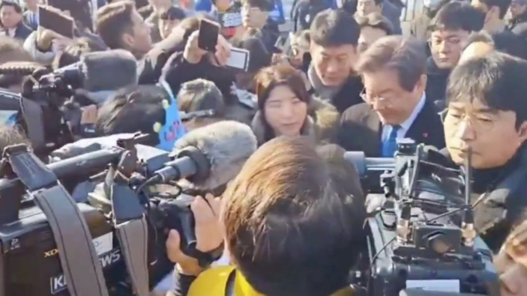 O político Lee Jae-myung, líder da oposição sul-coreana , foi esfaqueado no pescoço enquanto visitava um local onde ficará um novo aeroporto na cidade portuária de Busan.