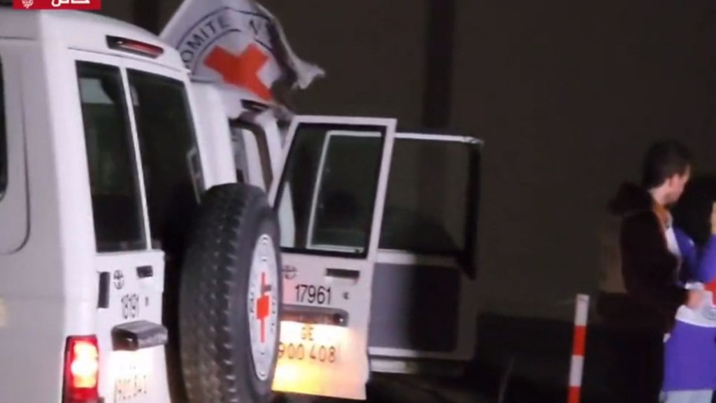 O momento da chegada dos reféns na Cruz Vermelha foi registrado e publicado nas redes sociais.