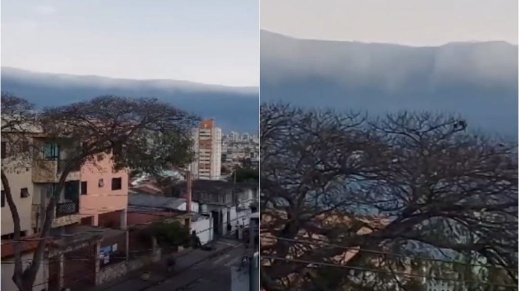 “Olha a divisão que está no céu. Nunca tinha visto isso, primeira vez. Acho que em cima deve estar ar quente e embaixo ar frio, por isso teve a divisão”, afirmou o morador que registrou as imagens divulgadas.