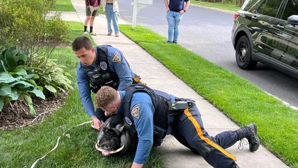 Segundo o New York Post, a fuga chamou a atenção das autoridades do Departamento de Polícia de Washington Township, que precisaram lidar com a situação. Fotos compartilhadas nas redes sociais mostram os agentes de segurança pública em ação, conseguindo capturar o porco fugitivo e o colocando em um caminhão para ser transportado de volta à fazenda.