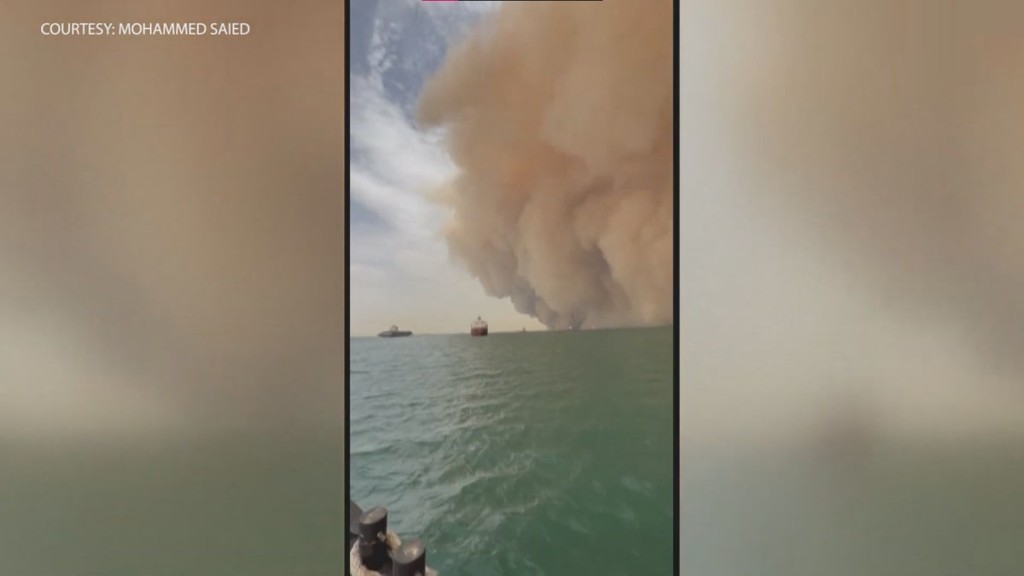No vídeo, a areia encobre as embarcações no Canal de Suez. Dois portos ao longo do canal foram fechados por conta do ocorrido.