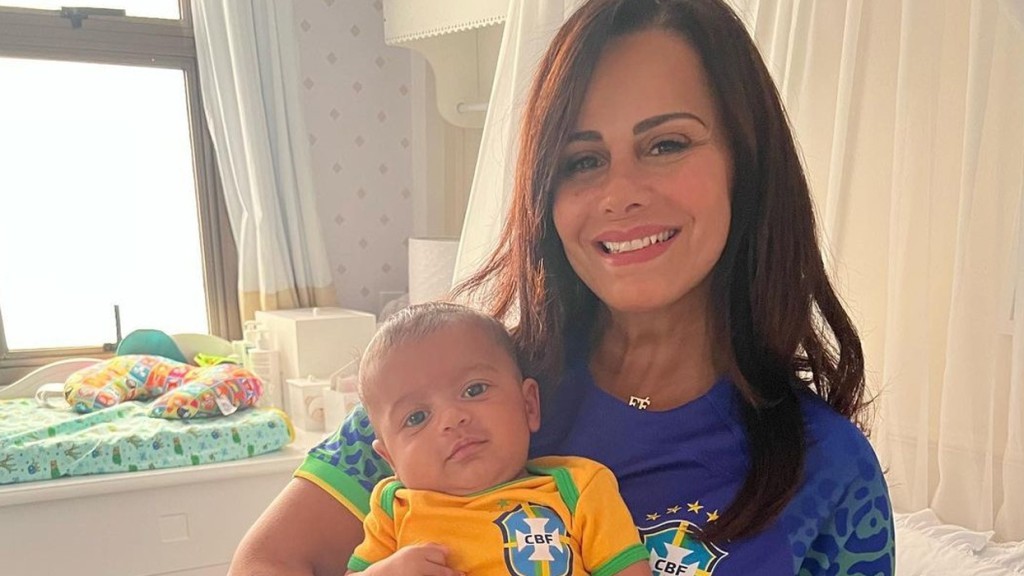 Viviane clicou o garoto usando um look da escola de samba do Salgueiro e encantou os fãs. Vestindo uma camiseta vermelha com a logo da escola, uma bermuda branca, combinando com um tênis vermelho, o menino roubou a cena.