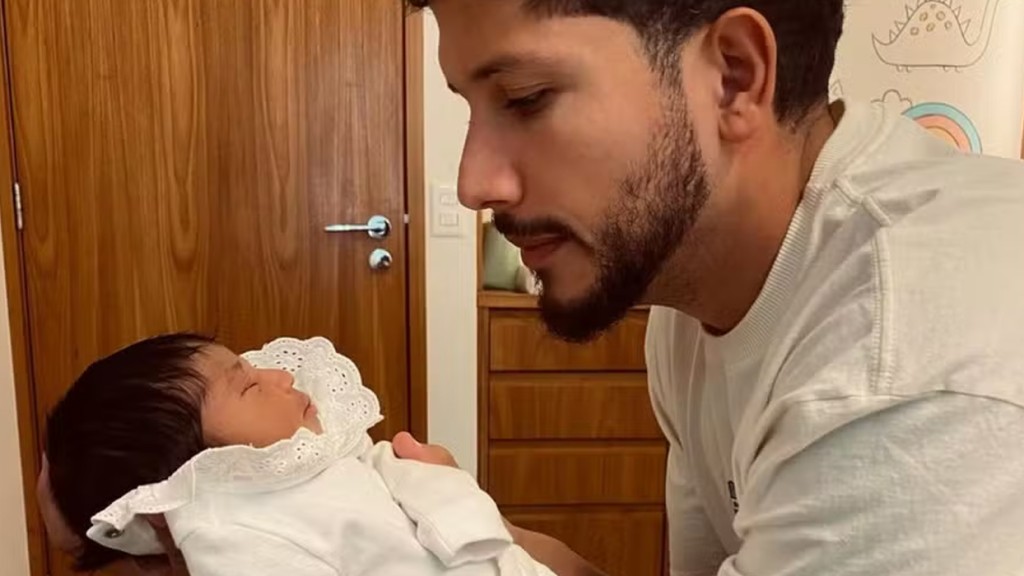 Na imagem, o jogador de futebol aparece deitado no sofá com a filha tirando um cochilo em cima de sua barriga. “Ela que pediu pra deitar assim (risos)”, brincou o atleta ao fazer o post nos Stories do Instagram.