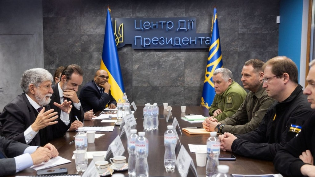 Por instrução do presidente da Ucrânia, Volodymyr Zelenskyy, o chefe do Gabinete da Presidência, Andriy Yermak, participou de um briefing de segurança para uma delegação do Brasil chefiada pelo assessor-chefe do presidente da República Federativa do Brasil, Celso Amorim